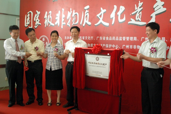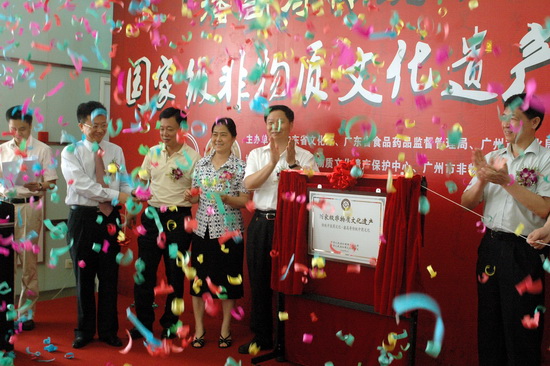 610由廣東省文化廳、廣東省食品藥品監督管理局、廣州市文化局、廣州市食品藥品監督管理局等單位聯合舉辦“潘高壽傳統中藥文化” 國家級非物質文化遺產掛牌儀式在我司隆重舉行。廣州市政協副主席平欣光、廣東省文化廳副廳長杜佐祥、廣東省食品藥品監督管理局副局長馬光喻、廣州市文化局局長陶誠、番禺區副區長黎偉棠,以及廣藥集團黨委書記林繼紅、廣藥集團紀委書記、廣州藥業黨委書記楊秀薇光臨,同時,省、市非物質文化遺產保護中心、省市老字號協會、廣東中醫藥博物館、番禺區科技局、番禺區食品藥品監督管理局、番禺區經濟貿易局、番禺區旅游局、番禺區東環街、廣藥集團、中山大學等單位的領導和專家出席了儀式。高朋滿座,還有來自潘高壽娘家人——開平市人民政府黃婉慈副市長親自帶隊成員有開平市人民政府關瑞斌副秘長、辦公室主任、開平市人民政府地方志朱柏林辦公室主任、譚月圓主編一行。儀式由廣州市文化局副局長張潤華主持。