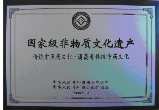 “潘高壽傳統(tǒng)中藥文化”國家級非物質文化遺產標牌